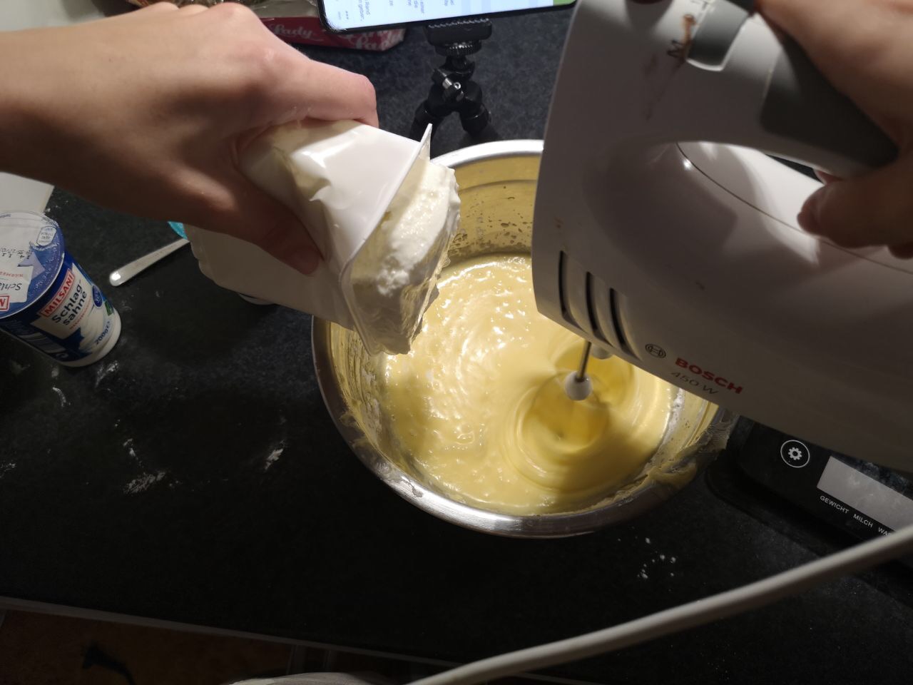 Auch hierfür standen die Zutaten schon bereit: Margarine, Zucker, Vanillinzucker, Vanillepuddingpulver, Eier, Quak, saure und süße Sahne.