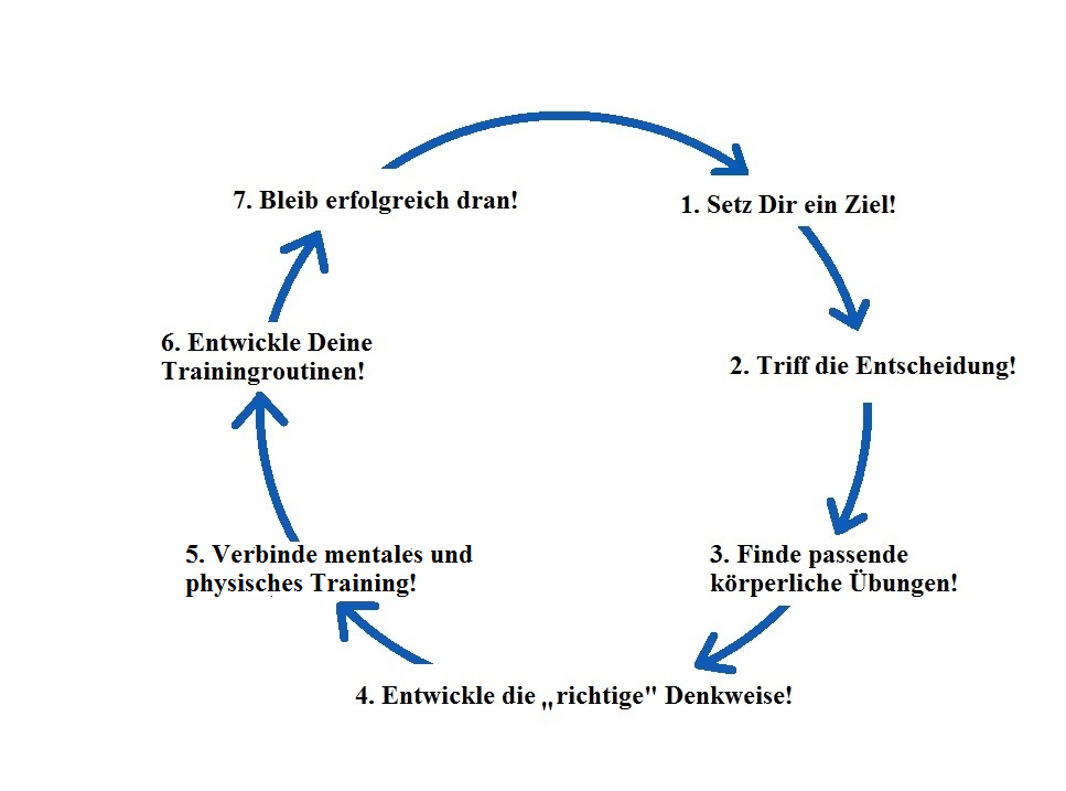 Denn erst, wenn Du mental richtig aufgestellt bist (wenn Du bewusst positiv denkst, Du motiviert bist und überzeugt, Deine Ziele erreichen zu können), dann kannst Du physisch so richtig durchstarten und Deine körperliche Situation aktiv und effektiv verbessern.
